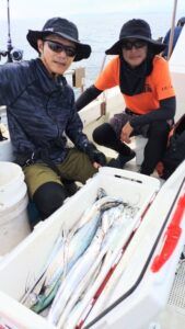 土日と太刀魚一本勝負でした。鯛ラバの日もありましたが60cmUPも出て楽しめましたが写真ありません(T_T)。昨日は風に邪魔されながらもトップは40本後半!ソナーとにらめっこしながら棚を決め打つと良型(指4本前後)が訳6割程度混ざりました👍。本日は少し船が多く朝一の時合を過ぎたらポツポツモードに🌚、マゼが強くなってきだしたころからプチ時合に突入し右舷・左舷のドウノマのお二人が入れポンになりました、肝は釣っていただくレンジです😁インスタもお楽しみくださいね(^_-)-☆
